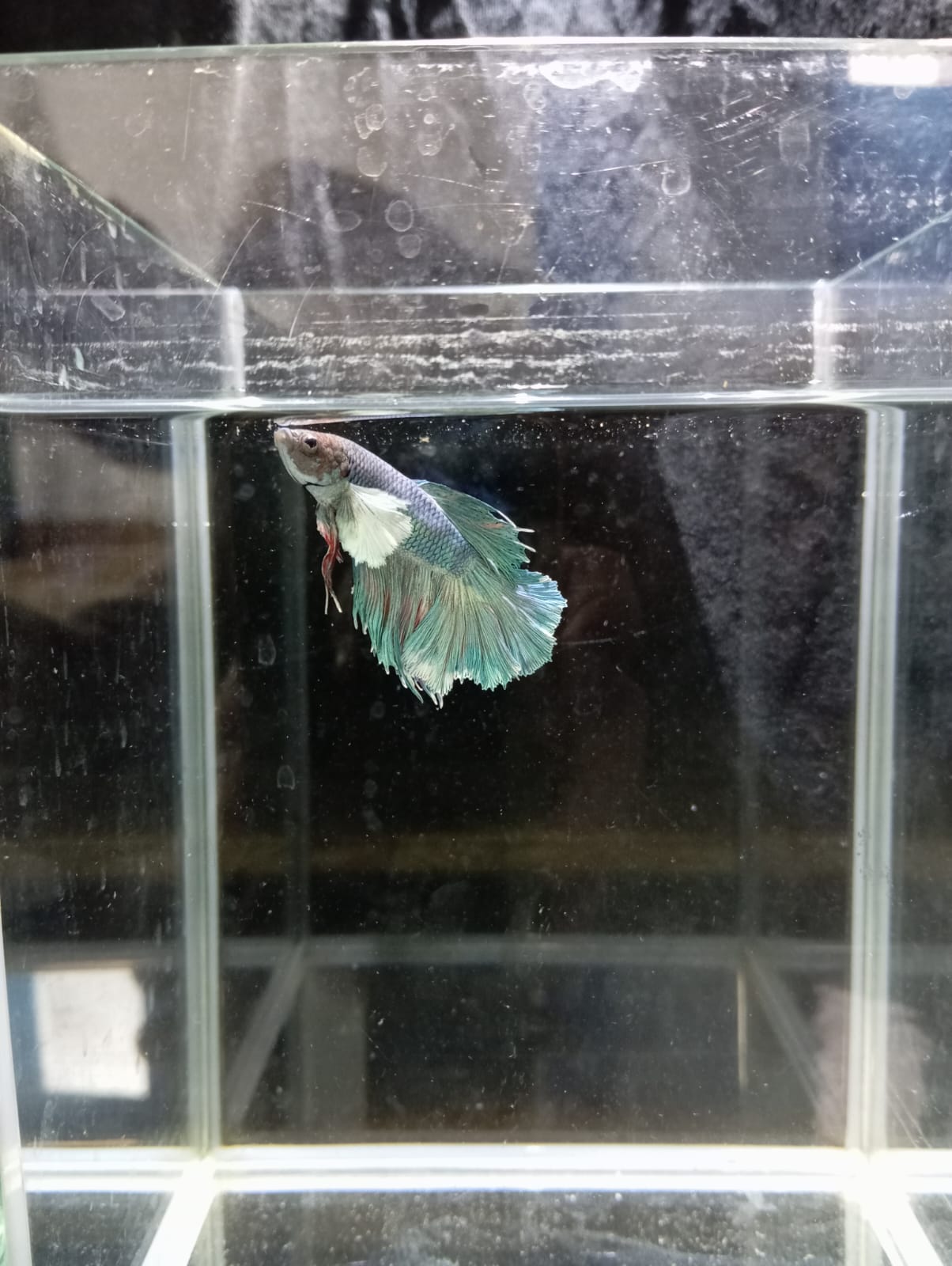 Un espectáculo de color y elegancia en cada movimiento. Este Betta HalfMoon macho luce un patrón bicolor impresionante con tonos azul metálico y rosa intenso, acompañado de un cuerpo escamado estilo dragón. Su aleta caudal en forma de media luna se despliega en 180°, convirtiéndolo en el centro de atención de cualquier acuario.